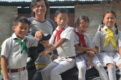 (Saroj Rai at left upon the Scooty)
